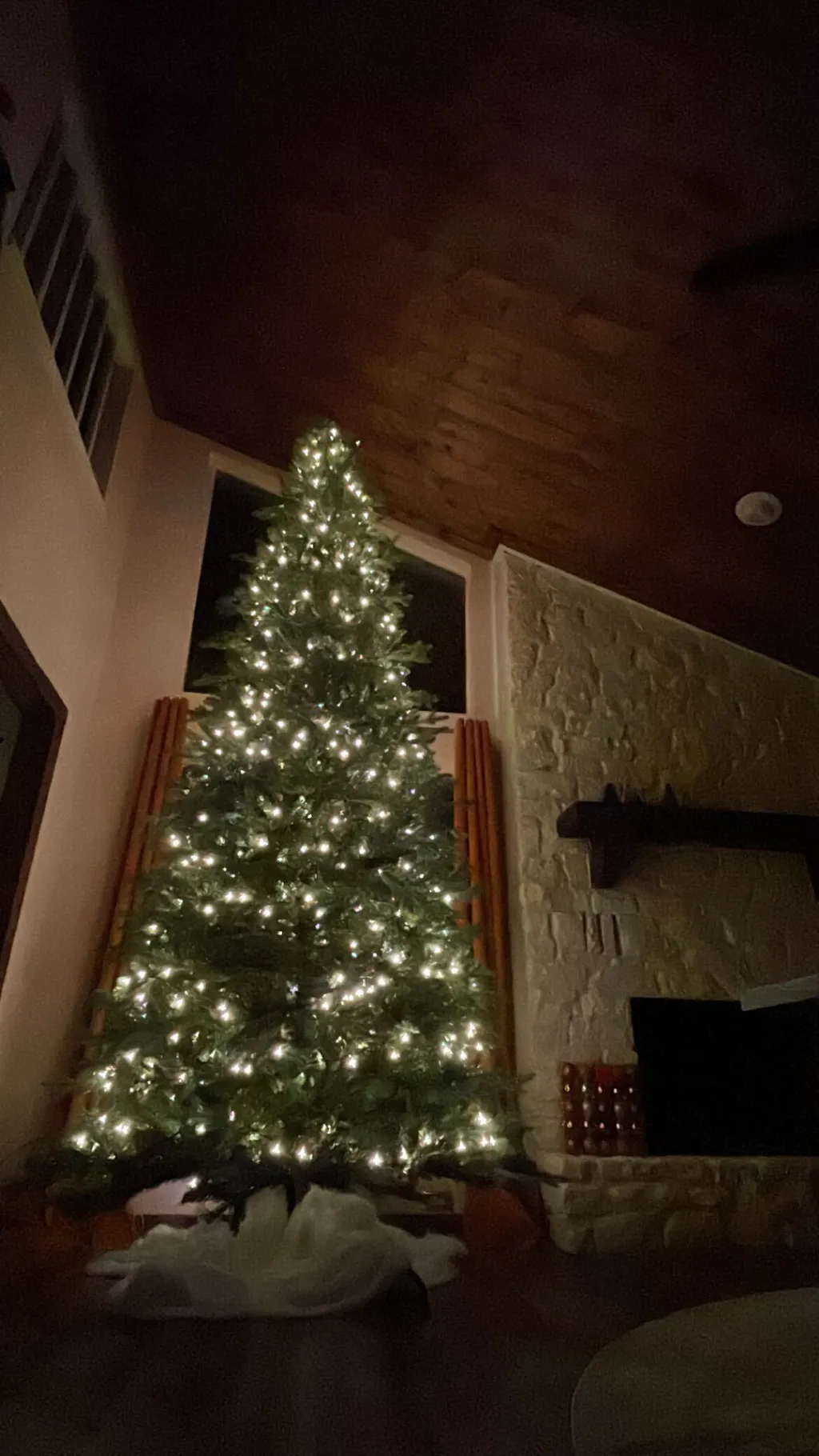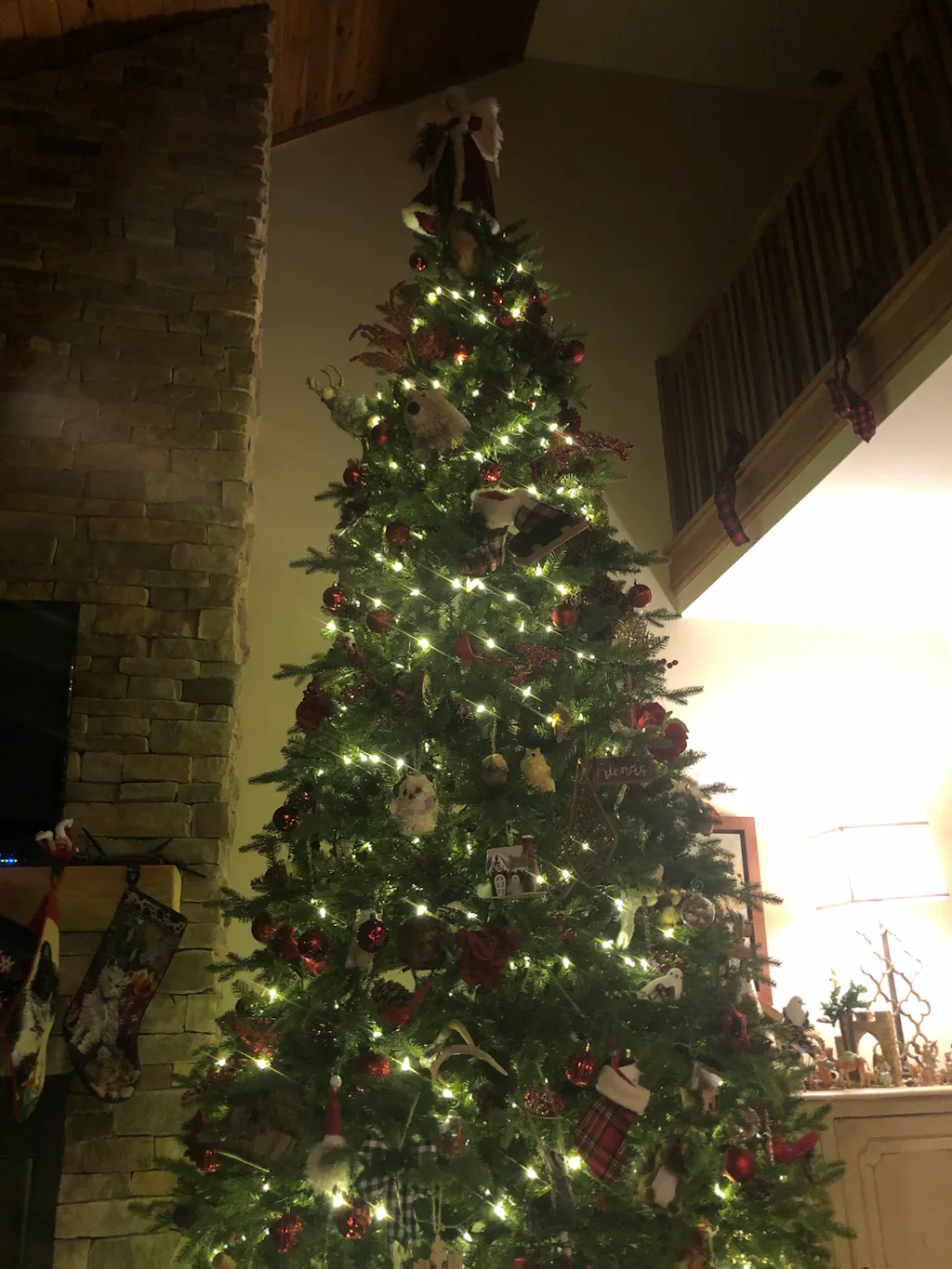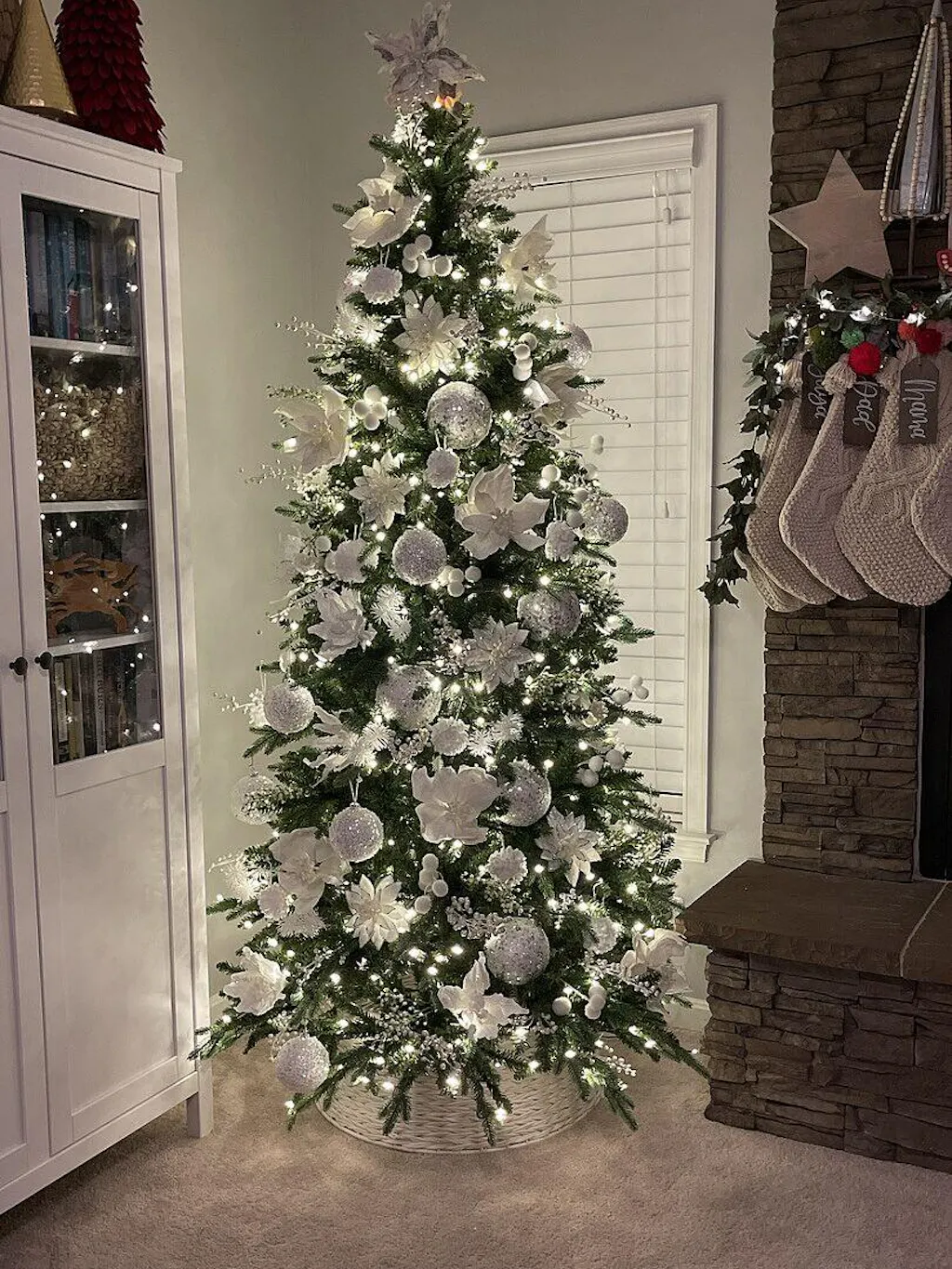 Aim for approximately 6 inches of space between the ceiling and the top of your tree (or tree topper). All heights include tree stands.